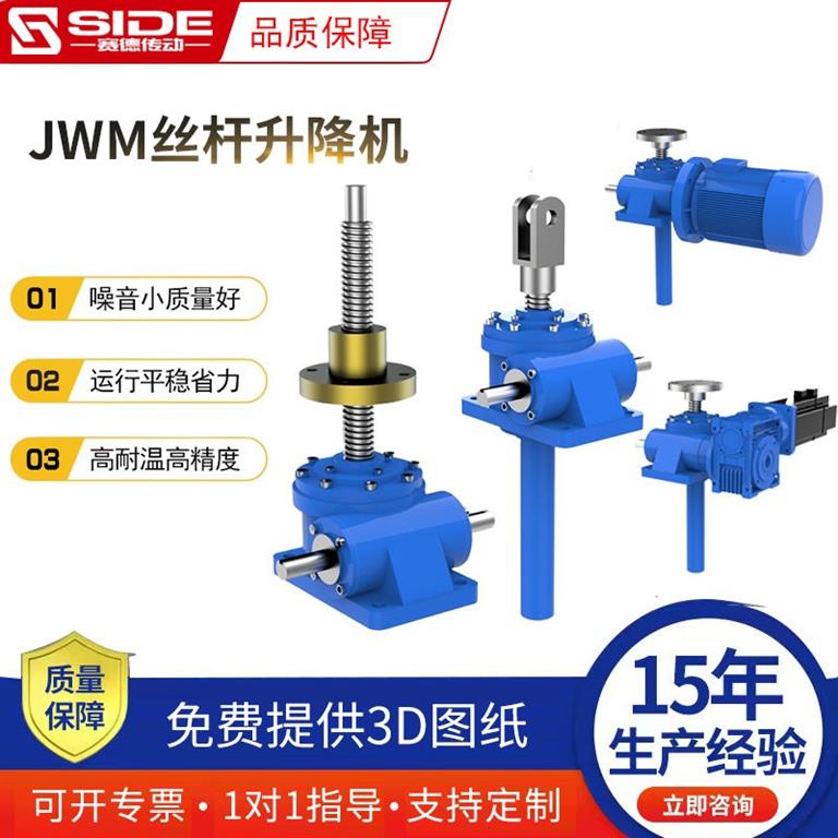 JWB滾珠絲桿升降機/JWA絲桿升降機適用于高速。高頻率和高性能的裝置中,JWB滾珠絲桿升降機主要構成部件為精密滾珠絲桿副與高精度蝸輪蝸桿副,效率高,用滾珠摩擦,提高整機效率,只須很小的驅動源,_可以產生很大的推動力。